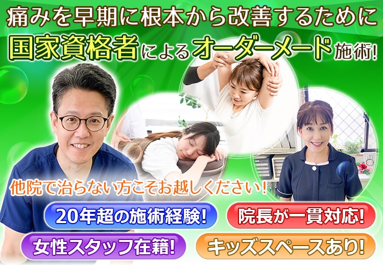 当院では、柔道整復師歴20年以上の院長が施術を担当させていただきます。そのため、途中で施術者が変わる・・・